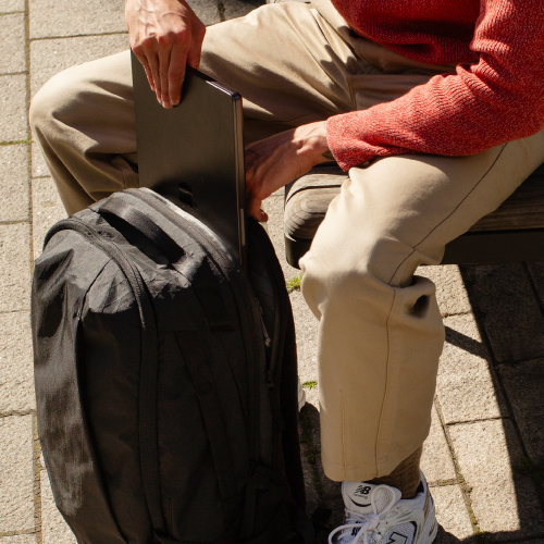 整理しやすい収納スペース広々としたメイン収納と、外側の両サイドにポケットが付いています。さらに、バックパック背面には17インチのノートPCが入る収納スペースがあります。