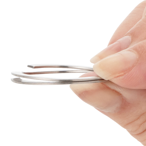 平押しの二重リングは、浮き部分を軽くつまむだけで簡単に開閉できます。クリップ型のリングはリーチが長いため、自由度が高くお使いいただけます。