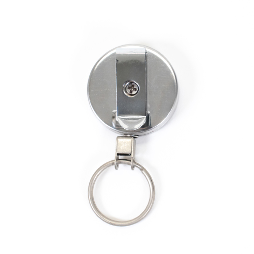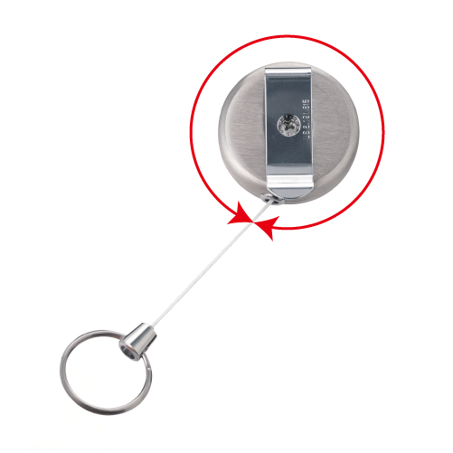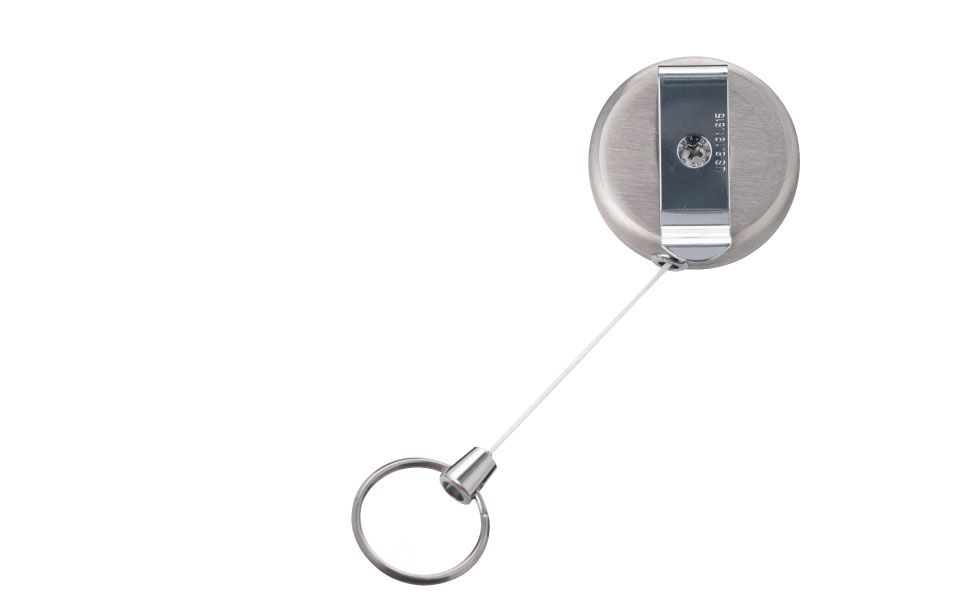 リングにつけられる鍵などの重さは約120gまで。リールを伸ばしたときの耐荷重は約4.5kgまで。本体が360度回転することで、吊るしたものを下から引き出すのではなく無理なく横や上へ引き出すことができます。