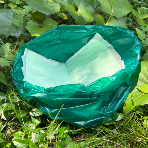 大気中の二酸化炭素が増加しない、環境に配慮した携帯トイレのECOサニタクリーン4枚と、高密閉チャック袋2枚がセットに。