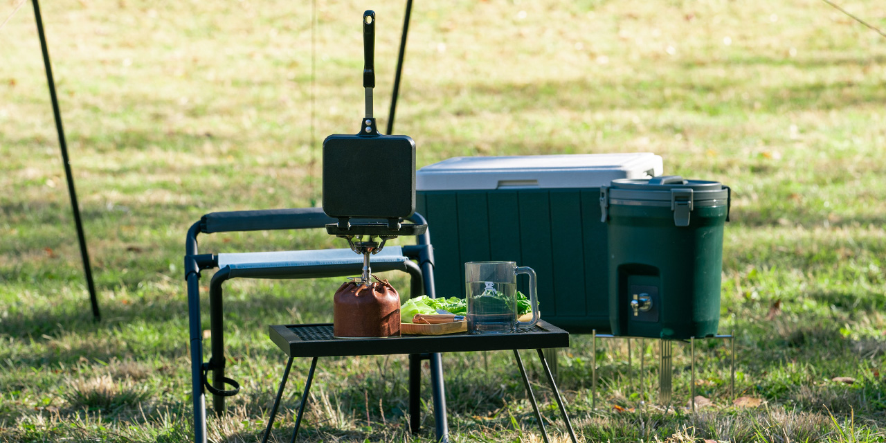 具材を挟んでおいしく焼き上げるクッカー。アイデア次第で多彩なアレンジが楽しめます。