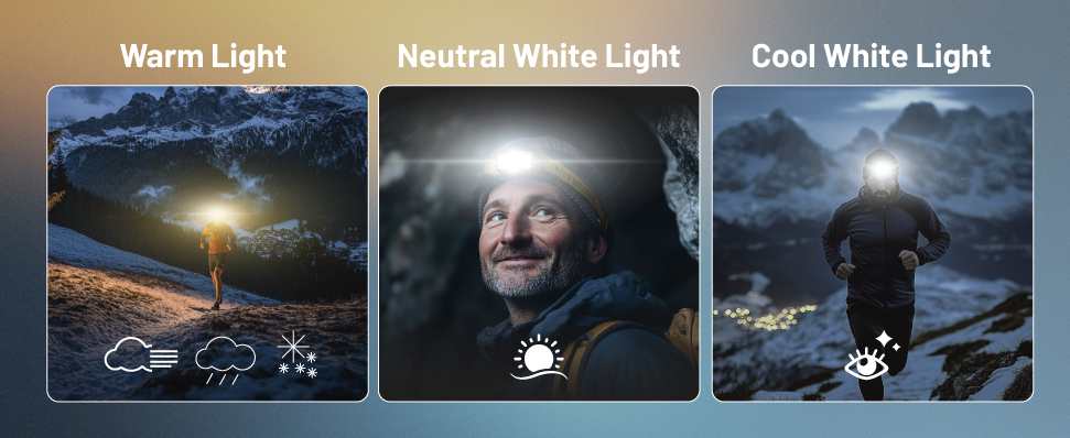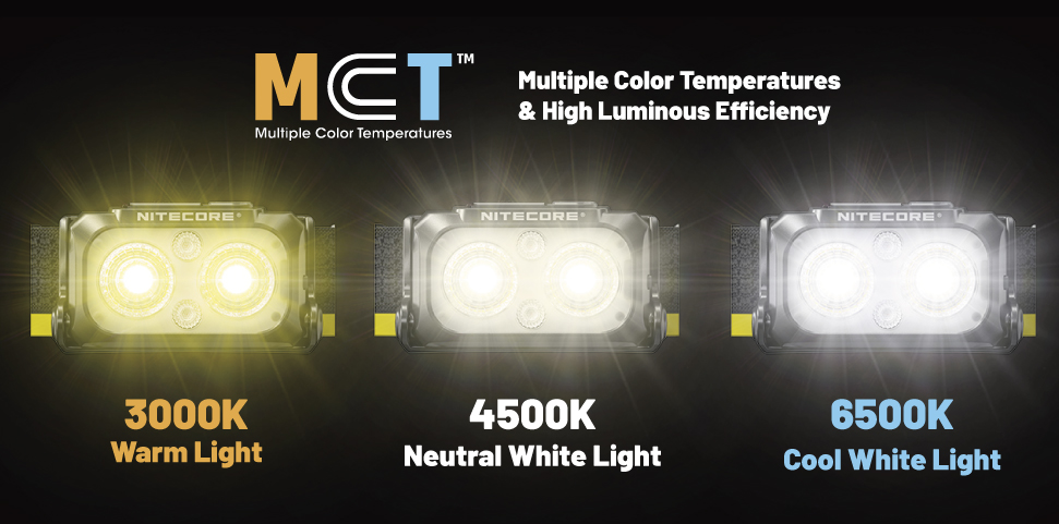 NITECOREの中でも注目して欲しい機能のひとつに「MCT(Multiple Color Temperatures)」が挙げられます。MCTとは、ひとつの光源で「ウォーム」「ニュートラル」「クール」の3種類の光色を自在に切り替えられる画期的な機能のこと。シーンや天候に合わせて最適な光を選ぶことができるのです。