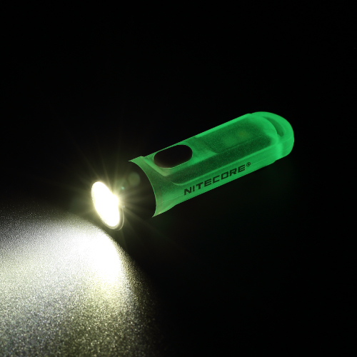 透明でフロスト加工が施されたボディに蓄光素材を採用しており、明るい場所で光を蓄えると暗所でほんのり発光するため、カバンの中やテント内でもすぐに見つけやすく便利です。グリーン蓄光は視認性が高く非常灯など安全確保に適しており、ブルー蓄光は目に優しく疲れにくい色合いでリラックス効果があり、長時間の使用に向いています。IP66の防塵防水性能を備え、強い雨や水しぶきにも耐えられるタフな設計で、コンパクトかつ軽量なのでキーチェーンに付けて持ち運ぶのにも最適です。