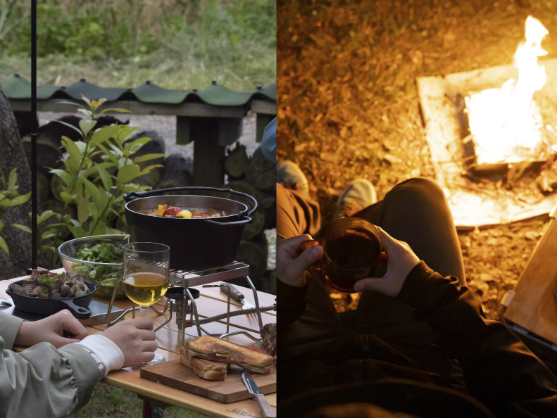 キャンプサイトでは「食事の時間」と「くつろぐ時間」が自然に切り替わるもの。そのたびにチェアを替えなくても、高さを変えるだけで対応できるのもグッドポイントです。