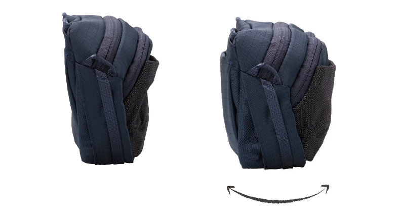 フロントコンパートメントの開口部は幅広のジッパー仕様で大きく開き、内部にはポケットも配置。毎日の持ち運びから急に増えてしまった荷物にも対応できる、十分な収納力と拡張性を備えています。