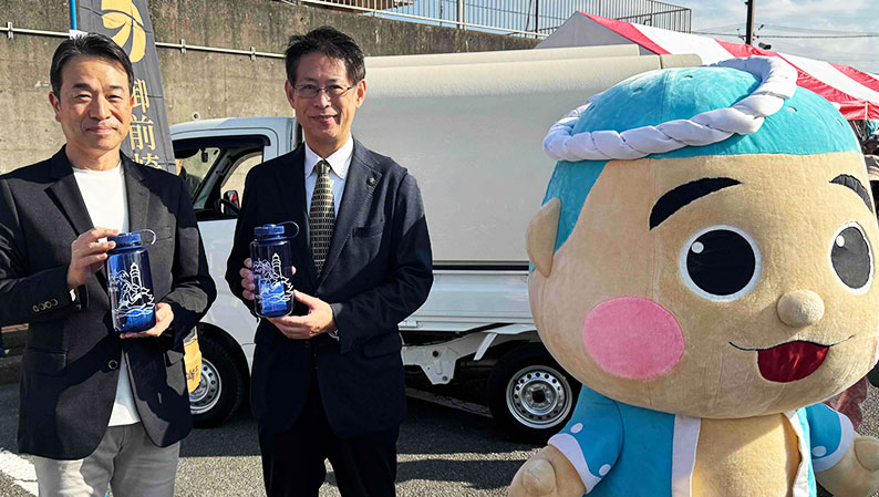 11月22日(土)から23日(日)にかけて、静岡県御前崎市役所周辺で開催された「大産業まつり」にて、当社が協賛する再利用可能ボトル(ナルゲンボトル)のオリジナルデザインモデルが販売されました。