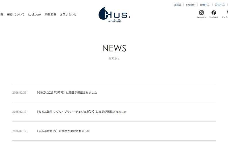 HUS.公式サイトでは、商品情報や展示会情報、ブランドニュースなどを随時掲載し、ブランドや商品の魅力をより多くの方にお届けしていきます。 この機会にぜひ一度チェックしてみてください。